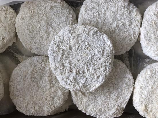えびがしっかり入った丸型の海老かつになります。 直径9センチ、厚さ約2センチと、サンドイッチにピッタリの形状です。 衣を除いた具に対して海老の構成比が、約86%です。(ちなみに、衣は白パン粉を使用し、衣率が50%です。) お客様の声 『海老カツを手頃な値段で高品質の物を供給してくれます。商品の安定供給も含めて助かってます。!』ベーカリー 仕入部長様 形態 50個入りです。 使用現材料 衣(パン粉、小麦粉、卵白粉、食塩、植物油脂、小麦たん白)、えび、加工デンプン、増粘剤(グァーガム)、調味料(アミノ酸)、香辛料抽出物、貝Ca、膨張剤 インドネシア産