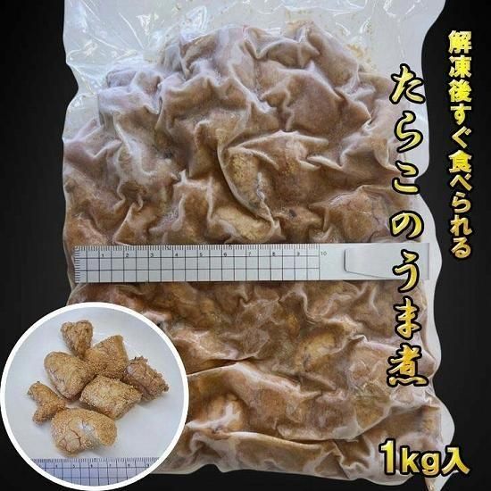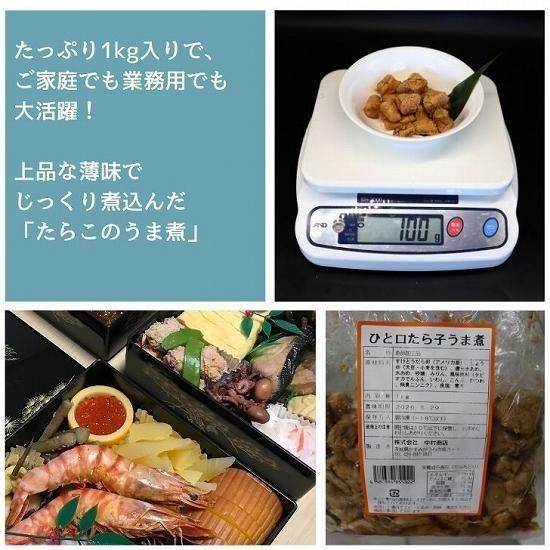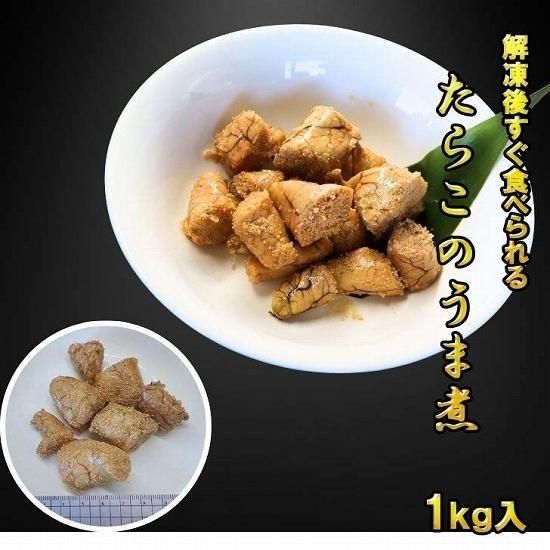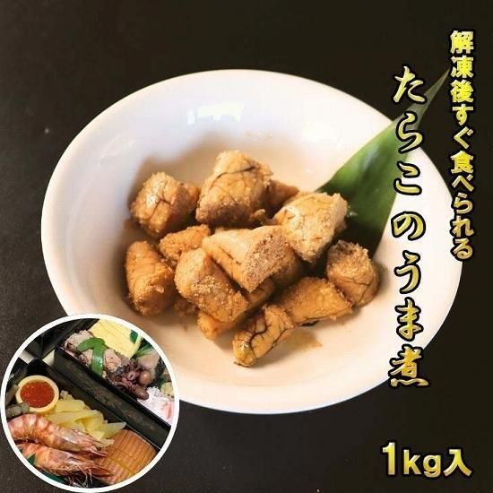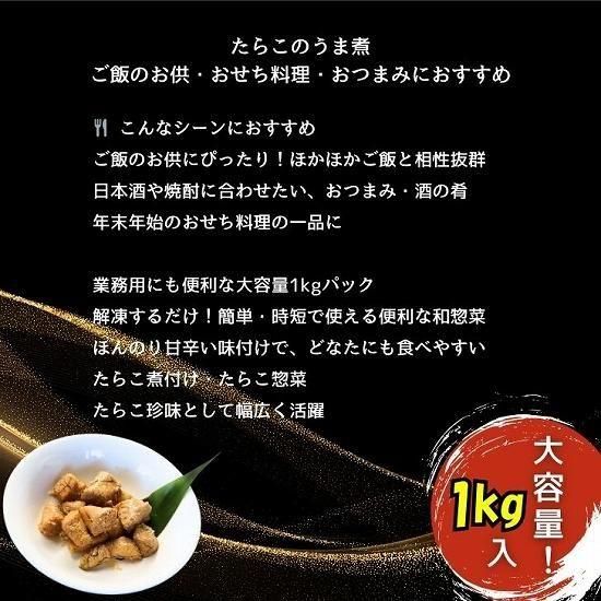 解凍するだけで簡単!大容量1kgのたらこのうま煮。ご飯のお供やおつまみ、おせち料理に最適な上品な味わいです。
